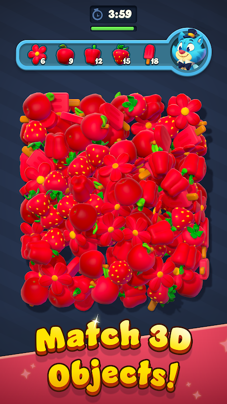 - Собирайте и сопоставляйте три одинаковых предмета, чтобы очистить игровое поле и продвинуться вперед.