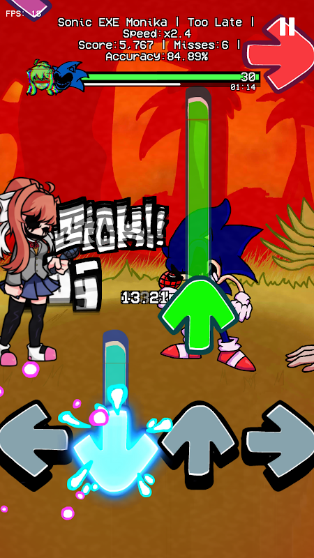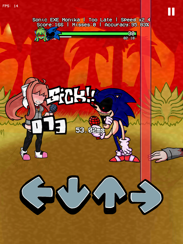 В прошлую пятницу вечером EXE.virus вторгся в мир фанков, за исключением клуба Doki Doki. Моника обратилась к Monika.EXE, и ей предстоит рэп-баттл против Sonik.EXE. Можно ли спасти Монику? Ну, это действительно зависит от тебя... Ты не можешь бежать! Итак, сражайтесь за Доки Доки друзья!