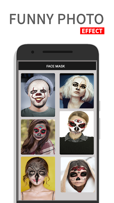 Забавный создатель лица - забавное и отличное приложение для редактирования лица, которое обеспечивает очищающую маску, страшные маски для Хэллоуина, маску для кошек, черную маску для лица, маски для Хэллоуина, маску для животных, маску для черепа, страшные маски для добавления на вашу фотографию и конвертирование вашей обычной фотографии в смешные картина.