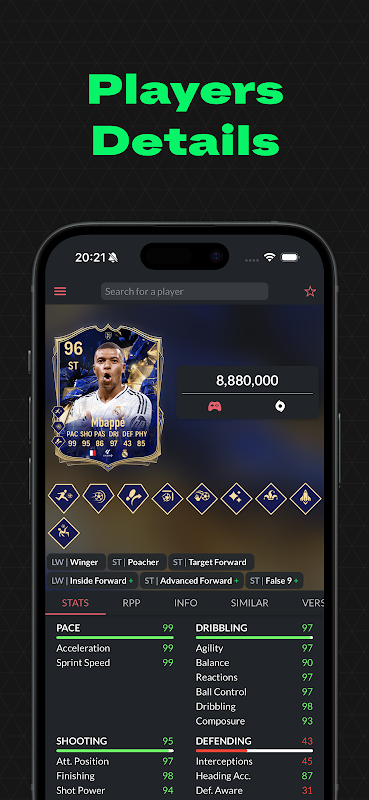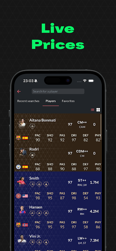 С помощью приложения FUTMIND вы можете просматривать базу данных игроков с ценами для всех платформ. Вы можете создать свою команду с помощью нашего конструктора отрядов и поделиться ею с друзьями.