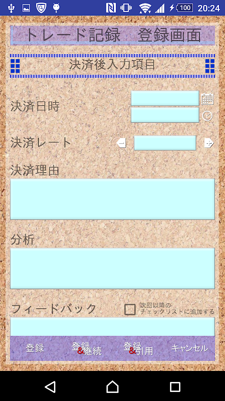 FXトレード(外国為替証拠金取引)を記録、メモし、収支管理、自己分析するアプリです。