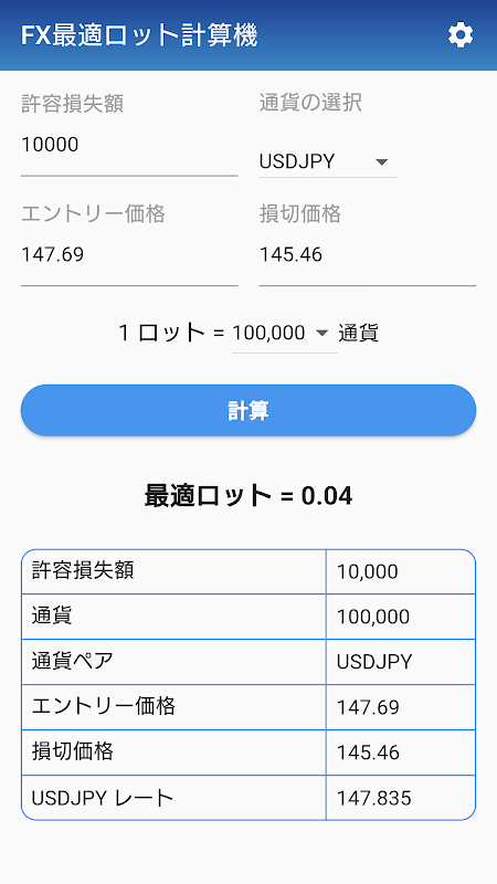 FX_最適ロット計算機~許容損失額を一定にするアプリ 2.1.2