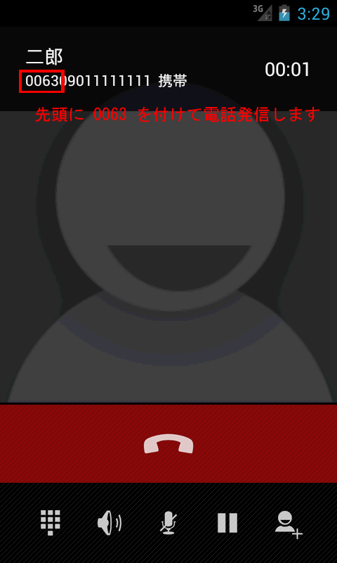 ・110や119などの緊急電話や、フリーダイヤル、既にプリフィックスが付いている発信履歴からの発信、無料通話が可能な相手への発信時には [ G-Call で発信 ] は選択しないでください。