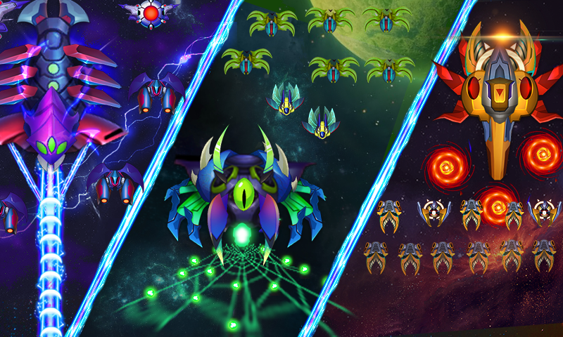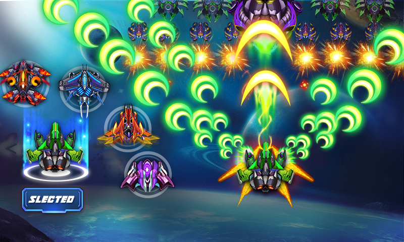 + Various modern spacecraft with 15 different weapons to defeat enemy types and especially 40+ Boss battles of enemy.