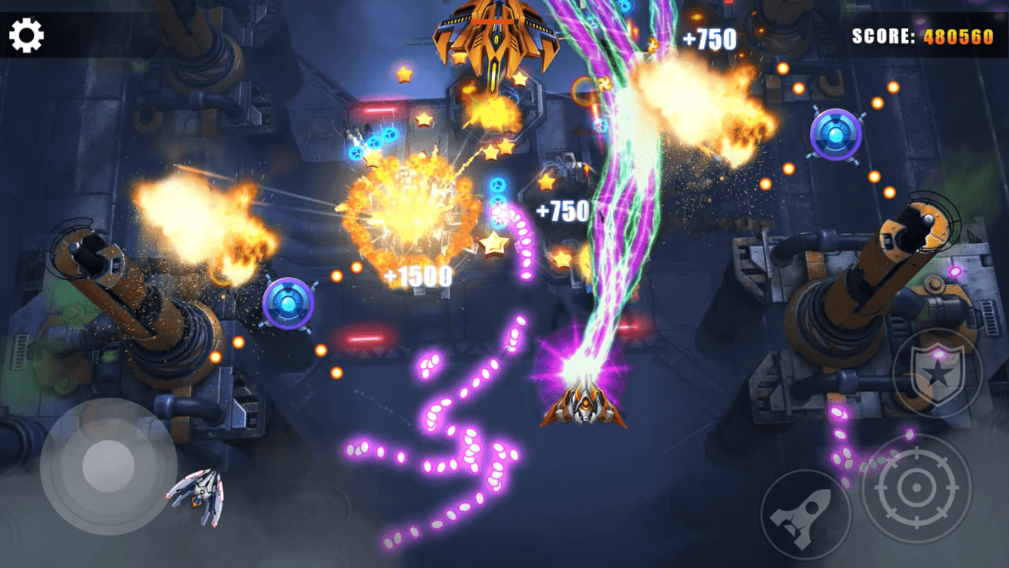Скользящий экран управляет вашим истребителем, чтобы двигаться влево и вправо, избегая стрельбы инопланетян и шатунами через пули. Поразите вражеский самолет, чтобы получить огневую мощь, а также доступны новые боевики.