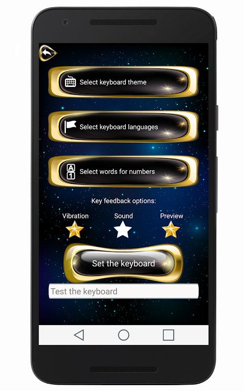 Выберите лучшую клавиатуру галактики для телефонов и пусть миллион стартового блеска на вашем экране! Если вы хотите чувствовать себя безгранично даже при отправке текстового сообщения и услышать великолепные звуковые эффекты, которые мы выбрали, чтобы соответствовать этим стильные скины - получить это бесплатное мобильное приложение! Попробуйте что-то совершенно другое и получить эту клавиатуру, которая поможет вам персонализировать свои мобильные устройства!