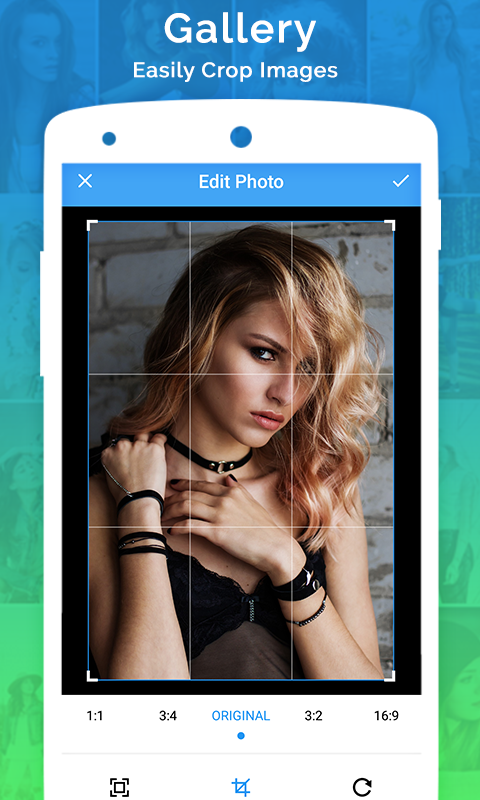 - Обрезать и вращать фотографии с различными соотношениями с галереей