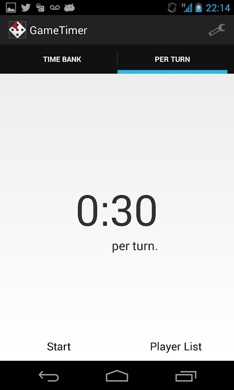 Игра Таймер была создана (хотя и не ограничивается использоваться) для соблюдения правил синхронизации, играя в настольные игры. Два основных функции позволяют игра будет приурочена отдельно для каждого свою очередь или накопления основе. В режиме хода за, пользователь может установить время за ход и отслеживать, сколько раз конкретный пользователь переходит. Второй режим, время банк, похож на шахматные часы. Каждый игрок получает столько же времени, чтобы начать и, как они играют своей очереди, время берется из банка этого игрока. После того, как этот игрок находится вне времени, они находятся вне игры. Пользователь также может отключить ликвидации режима смысл только игрок не уложится во время, они не выбывает из игры. Приложение будет отслеживать, как далеко в течение долгого времени игрок пошел.