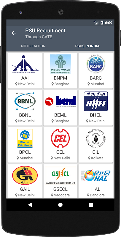 - PSU Recruitment through GATE Score - Some of the Public Sector Units like BHEL, BP, HP, IOC, NHAI, NLC, NPCIL, NTPC, PGCIL, THDC, VIZAG, etc., directly recruits on the basis of GATE Score. You can find detailed information here in the app.