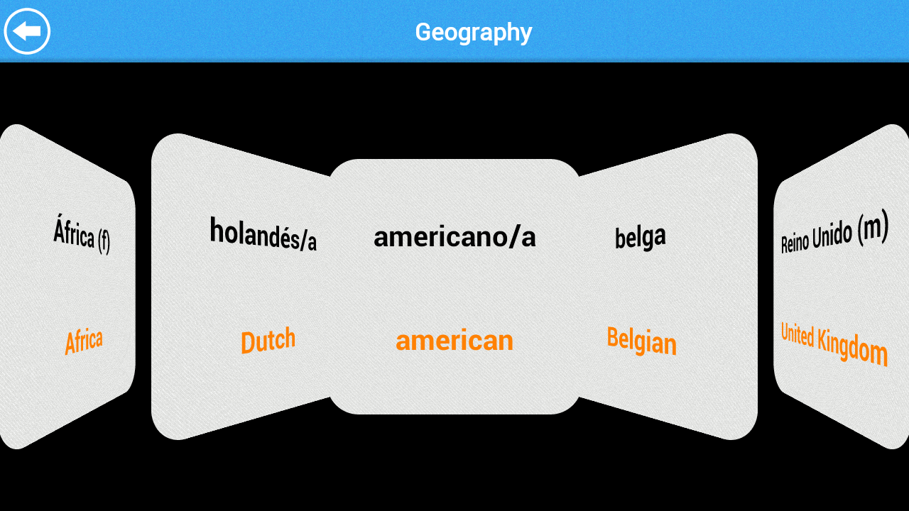 This innovative app has beautiful flash cards with coverflow view which can be viewed either by Spanish to English or English to Spanish.