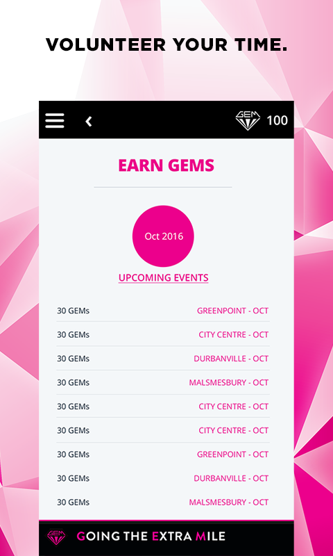 Find out where and how you can do good-deeds in your neighborhood. By helping out, you get rewarded with GEMs ( 1 GEM = R1 ).