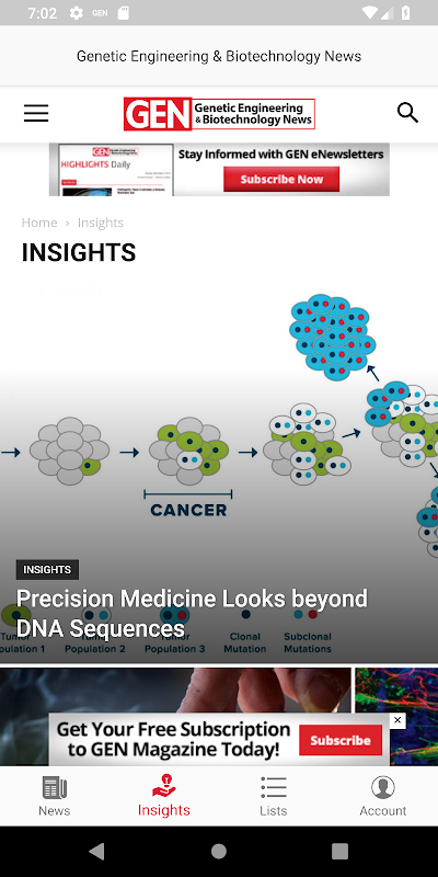 Introducing the new GEN app for Android. If you do research and development or have interest in life sciences, you need this free app. Keep up with all the latest news, insights, technological advancements, new products, and discoveries. We cover the entire bioproduct life cycle from early stage R&D to applied research including OMICs and biomarkers, as well as diagnostics, to bioprocessing and commercialization.