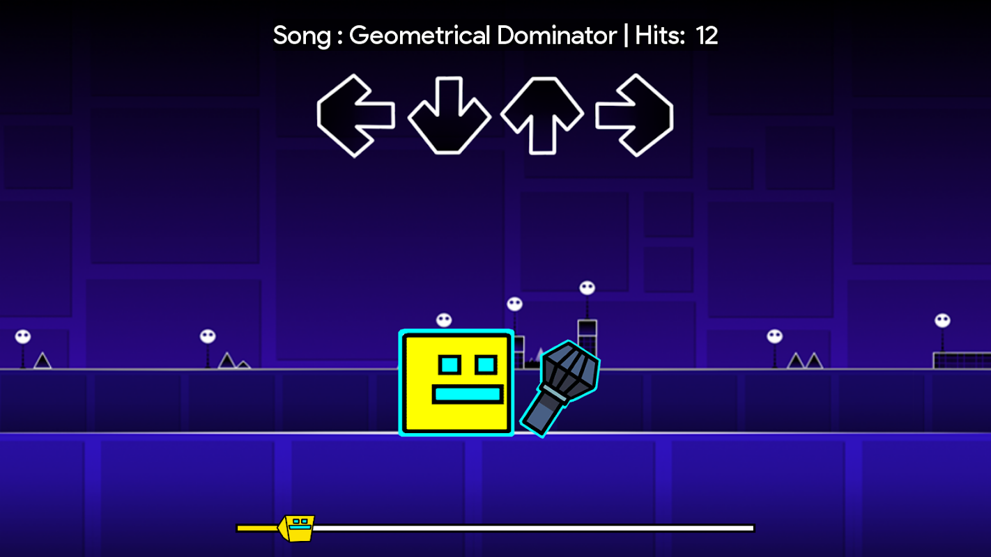 Эта игра отлично работает в автономном режиме. Вы можете играть в нее, используя четыре кнопки, чтобы создать свой собственный уникальный хит под музыку Geometry 2.2 Dashing FNF Mod Character.