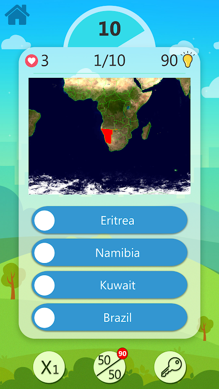 Take a crack at your knowledge and challenge your friends around the world by connecting through Facebook leaderboards. Getting ready for a geo gk exam? Easily learn facts about countries, while becoming a true trivia buff. Ace the National Geography Olympiad just by increasing your progress in the game and learning more geo gk.