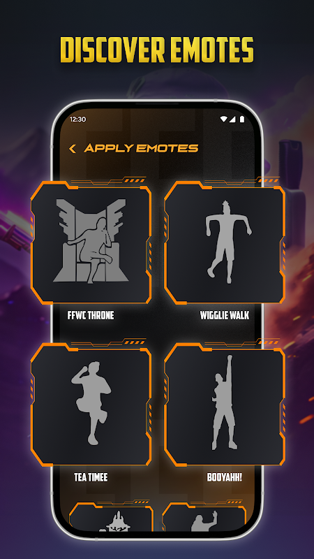 - Исследуйте скины персонажей, конструкции оружия и эмоции.