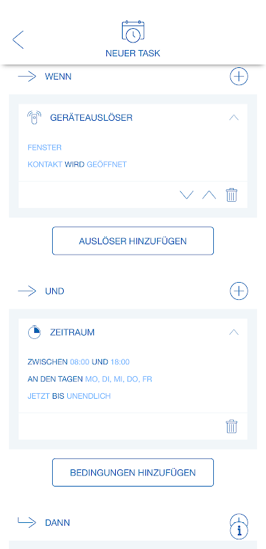- Правила, которые легко настроить (если / тогда) с триггерами (например, датчики, состояния устройства, время, астрономия) и многоуровневыми условиями (и / или)