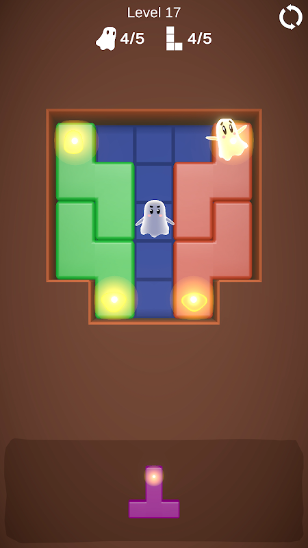 Каждый уровень дает вам определенный набор блоков для использования. Вам не нужно заполнять всю сетку, но вы должны разместить все блоки и уничтожить каждого призрака.