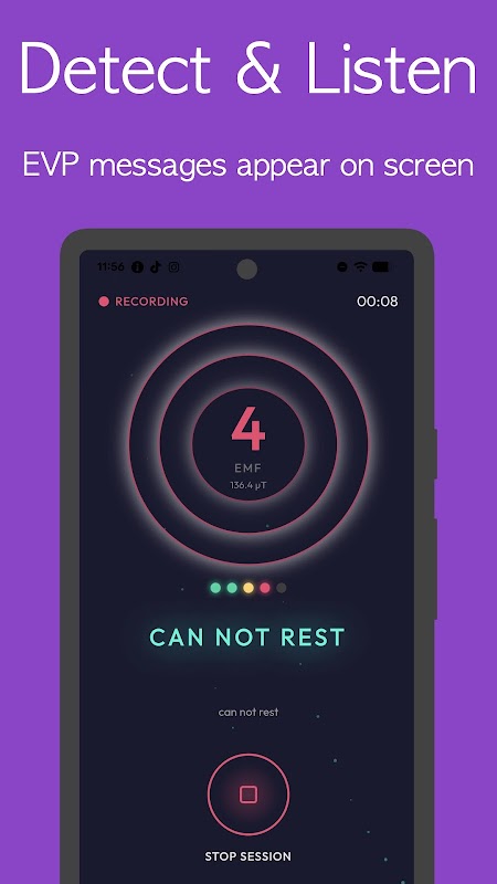 Используйте встроенный магнитометр вашего телефона для сканирования колебаний электромагнитного поля в реальном времени. Наблюдайте, как показания ЭМП реагируют на изменения магнитной среды вокруг вас. Приложение использует реальные аппаратные датчики вашего устройства для создания захватывающего опыта во время каждого сеанса.