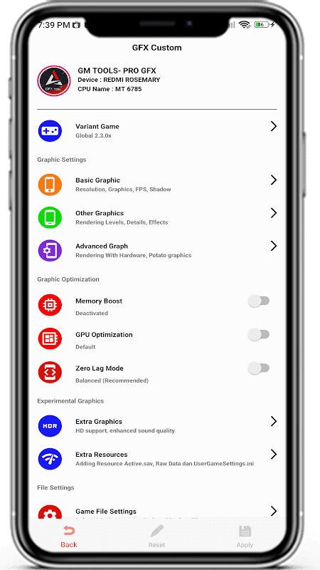 Профессиональный инструмент GFX для геймеров и Game Booster для всех тяжелых игр.