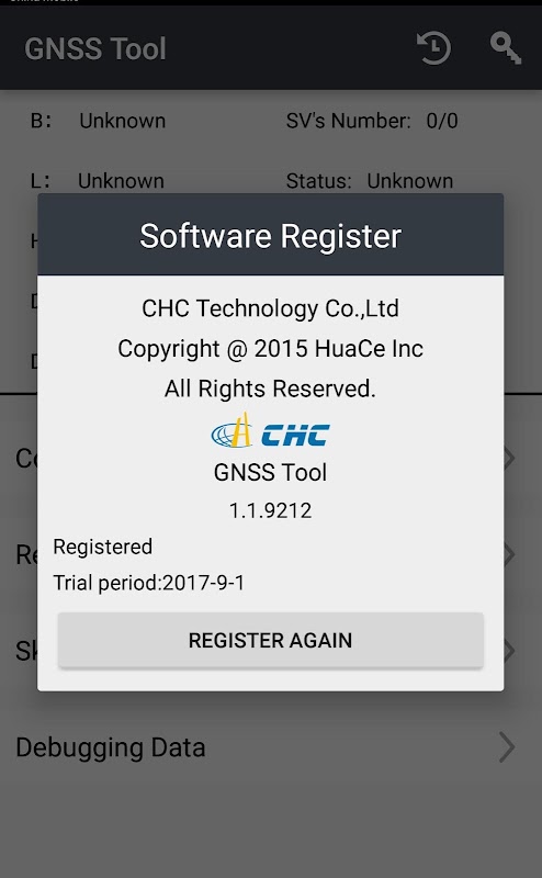 GNSSTool может работать на всех Android устройств от разных производителей с версией OS 2.3 и выше, CHC предоставляет всем пользователям бесплатный след до 1 сентября 2017 года.
