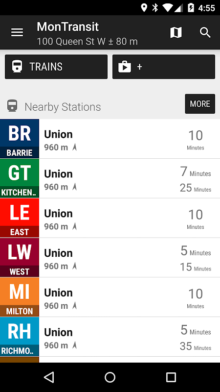 После установки этого приложения приложение MonTransit будет отображать информацию о поездах (расписание ...).