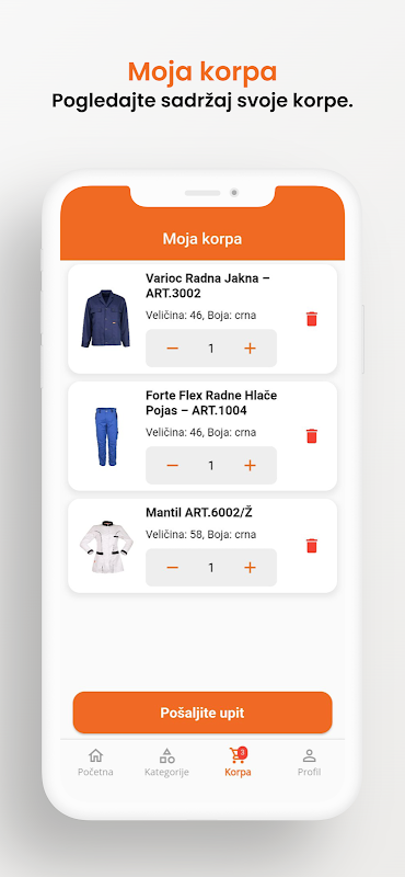 🔹 После того, как вы найдете идеальные предметы одежды, Gončin Workwear позволит вам заказать их прямо из приложения. Процесс заказа быстрый и простой, и все необходимое у вас под рукой.