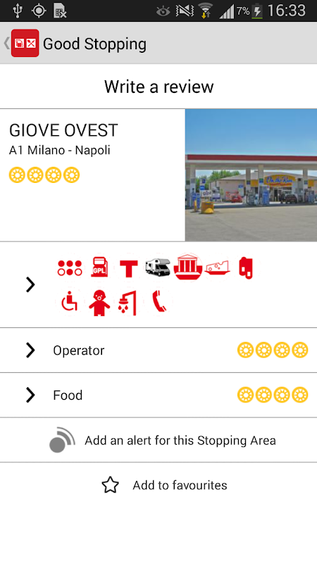 Se poi vuoi scrivere tu una recensione su una specifica area di servizio, allora l'app ti consente di farlo scrivendo il tuo parere e la tua valutazione generale.