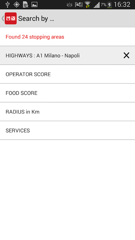 E' possibile ricercare le aree di servizio che si trovano su una specifica autostrada, in base alle valutazioni, alla distanza dalla propria posizione e in base ai servizi che ci interessa trovare alla prossima area.