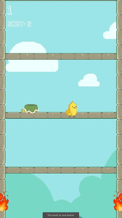 You are the newborn parrot trying to run away from fire. Try to jump up and stay far away from another animal, fire to save your life.