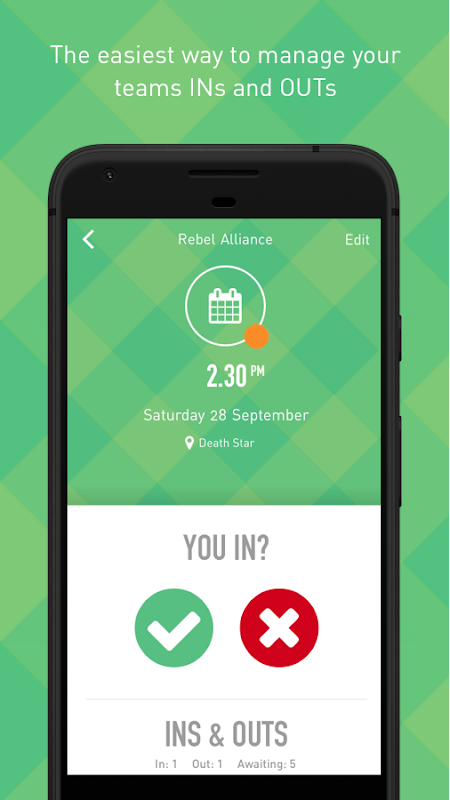 Where ever you and your phone go you can add or update a game or let the team know if you’re IN or OUT