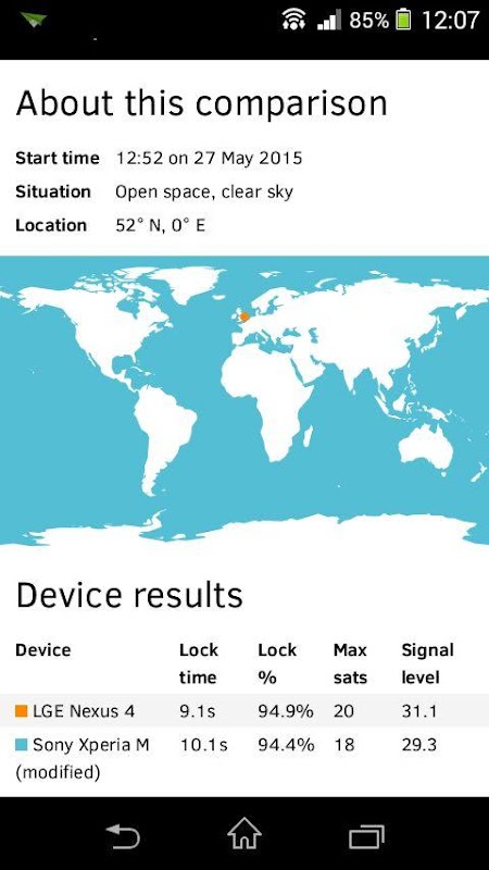 This app lets you compare two or more devices to see how good their GPS systems are. You can use it as a kind of GPS benchmark to rate one phone against another.