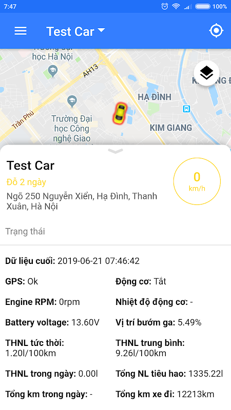 Приложение для наблюдения за автомобилем с помощью устройства отслеживания круизов через GPS.
