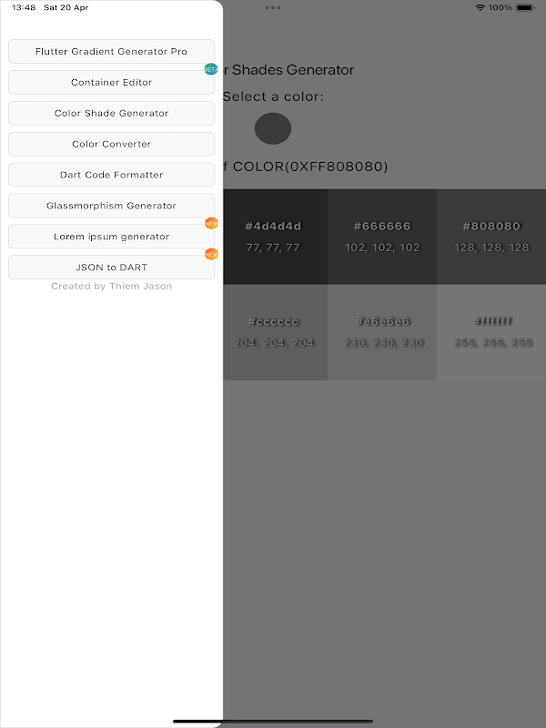- Генератор градиентов: создавайте красивые линейные, радиальные и плавные градиенты, специально разработанные для Flutter.