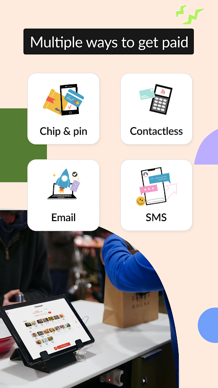 Легко принимайте платежи наличными, кредитными/дебетовыми картами, GooglePay, ApplePay (с дополнительным считывателем карт GO!) или отправляйте платежные ссылки по электронной почте или SMS для максимального удобства и безопасности.