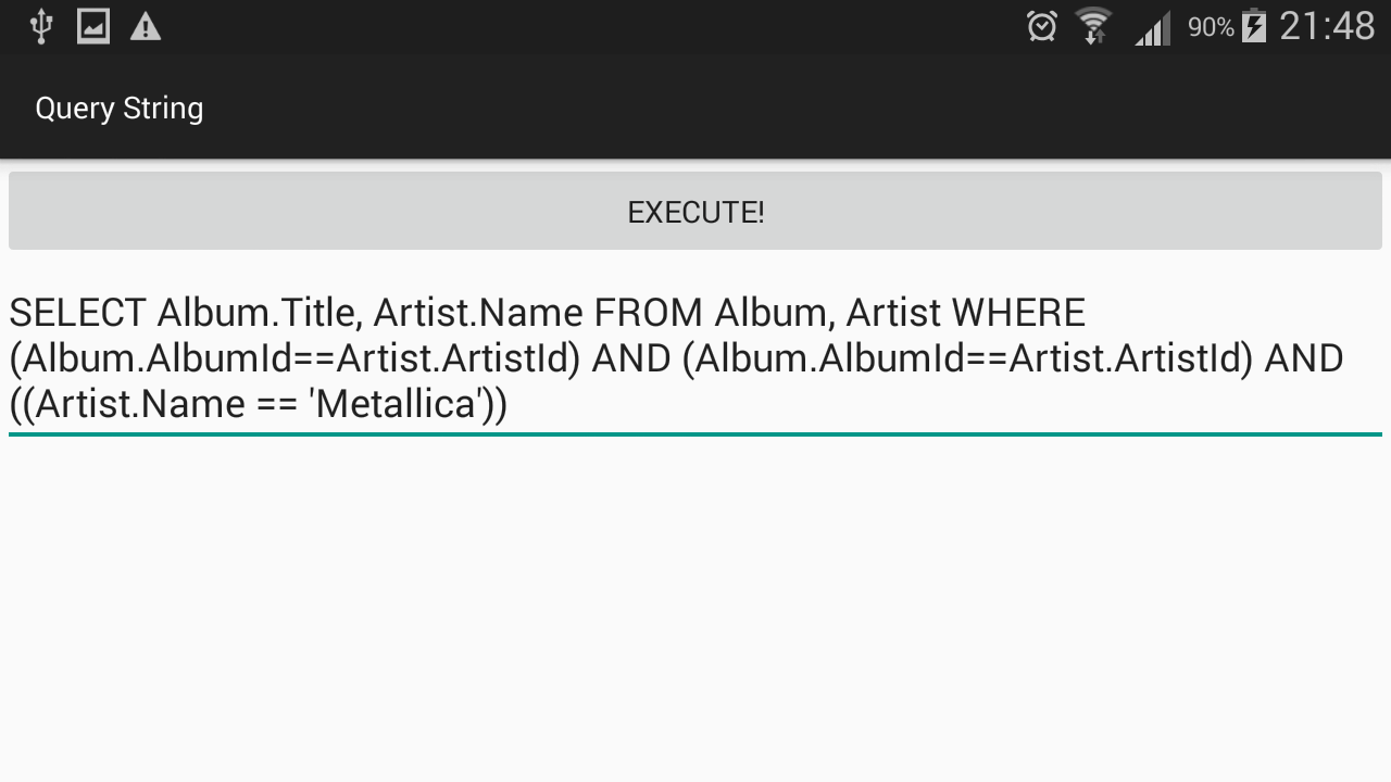 Metaphors, Color and other functionality like zoom are used for the best comprehension of the database schema and the query development. The multi-touch gestures which performed on the device display, translated to equivalent SQL queries and executed in the SQLite database. The by default selected database for this initial version of the application is the Chinook database.