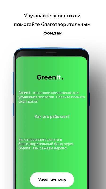 GreenIt - это новый стартап, который решает сразу 2 проблемы: экологическую и социальную. Любой человек может зайти в приложение и отправить деньги в благотворительный фонд через GreenIt. За каждую отправленную сумму наши волонтёры и наш робот Planter садят деревья. Вы можете посмотреть это в прямом эфире на нашем сайте test.docchaika.kz.