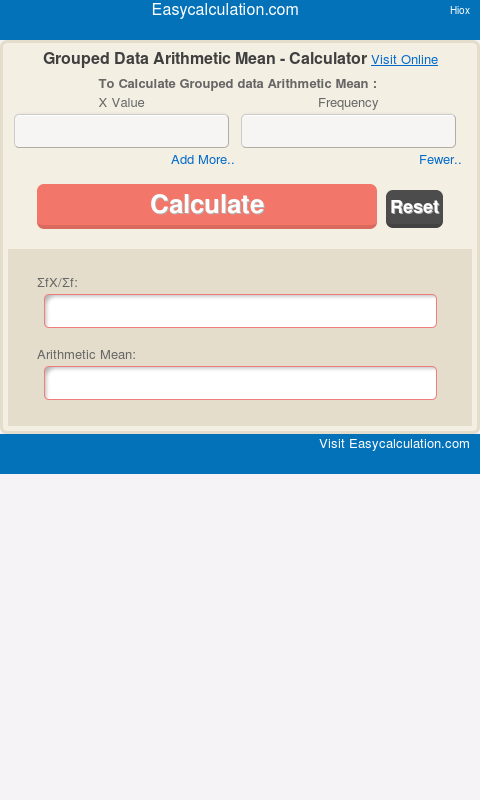 Grouped data arithmetic mean calculator: Helps you to find the arithmetic mean of grouped data.