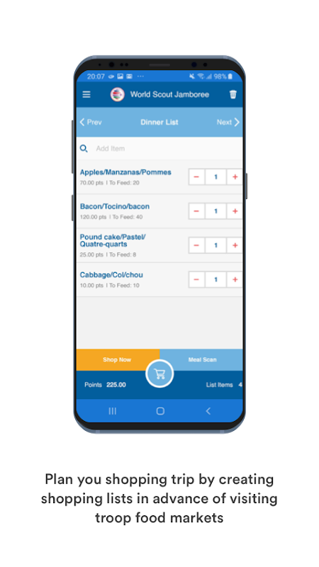 World Scout Jamboree - Grocery item list planning and scout food market shopping application