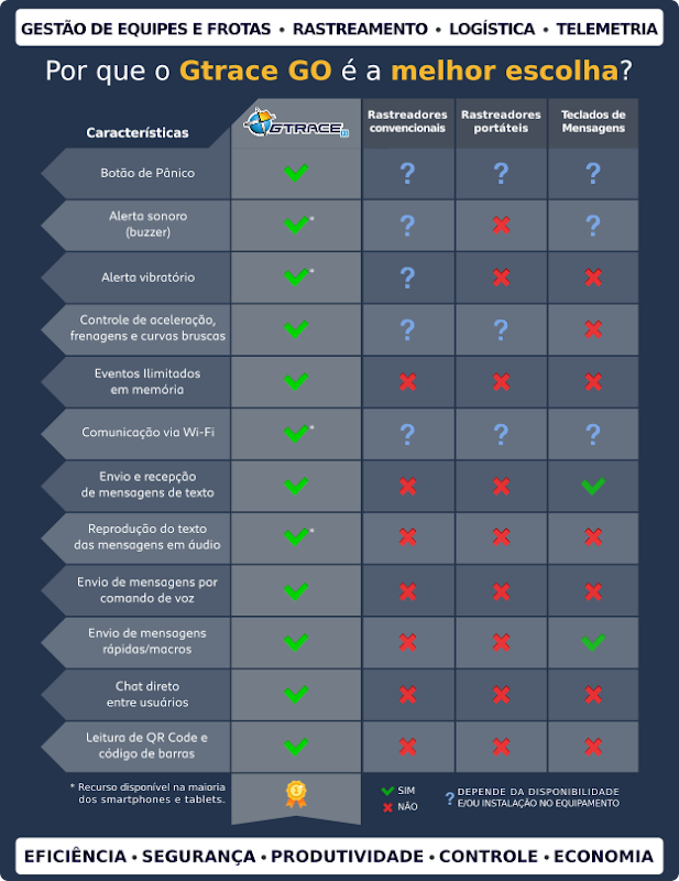 * PRINCIPAIS FUNCIONALIDADES DO APLICATIVO GTRACE GO *