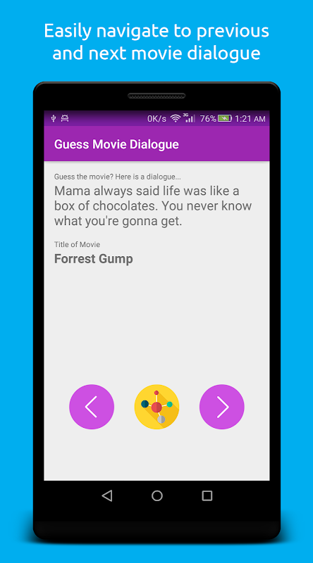 Вы любитель кино? Можете ли вы угадать название фильма по диалогу? Бесплатное приложение Guess Movie Dialogue позволяет вам находить все ваши любимые диалоги фильмов на одной платформе. Читайте диалоги из ваших любимых фильмов, угадывайте названия фильмов и делитесь ими с друзьями в социальных сетях.