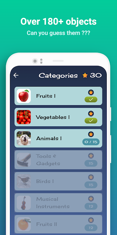 Guess The Object — это лучшая игра-головоломка, которая развлечет и бросит вызов игрокам всех возрастов! Погрузитесь в мир веселья с разнообразными категориями, такими как фрукты, овощи, животные, птицы, деревья, гаджеты, инструменты и многое другое.