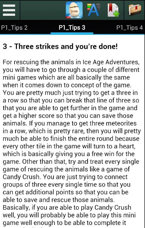 Guide Ice Age Adventures, will help you in all your endeavors, from the very beginning to the victorious end! Guide Ice Age Adventures are the secrets, hidden levels, tips, description, passing and much more without which just did not become the best in the world! Now you can with this app!