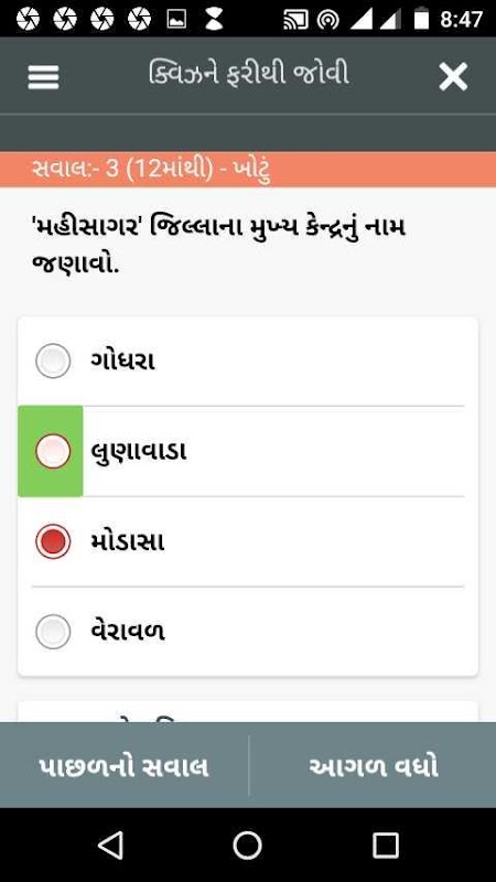 Это приложение содержит один тест для изучения расположения Гуджарат округов и один тест, чтобы узнать название района головного офиса. Место викторины обучение дается с расшифровкой и без подробностей. Есть также легко и жесткие режимы. Все эти вопросы-ответы доступны в 3,2 и 1 попытку. Так что, он может быть использован для всех типов студентов, как умный, средний и т.д ... После завершения всех вопросов в части, студенты могут получить идеальный результат с процентом. Студенты могут пересмотреть все вопросы-ответы с помощью «Обзор викторина» после результата. Вы можете перезапустить ваш Незавершенный викторин, где вы оставили.