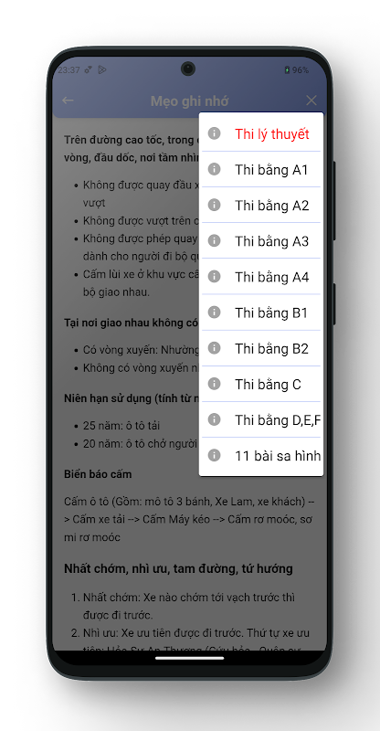 - Thêm các mẹo thi cấp tốc bằng lái A1, A, B .. .