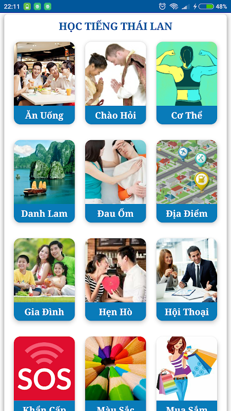 Приложение «Учите тайское общение и произношение» включает в себя тысячи основных коммуникативных предложений для тех, кто собирается путешествовать, учиться и работать в Таиланде.