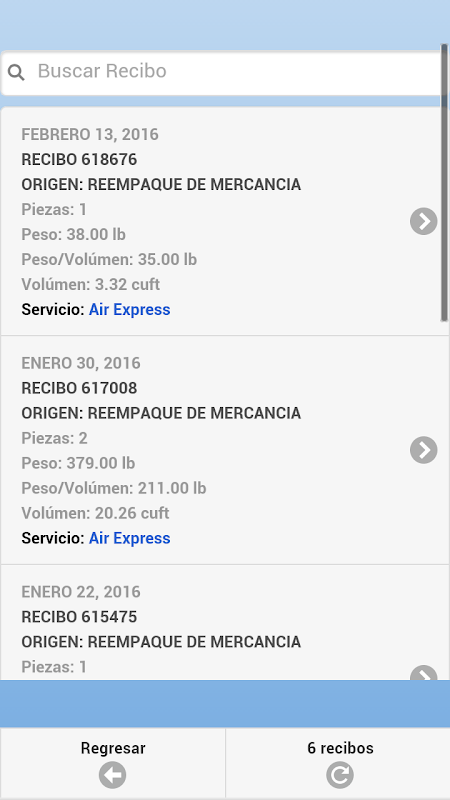 * Búsqueda de Recibos por Número de Recibo y/o Rastreo (Tracking).