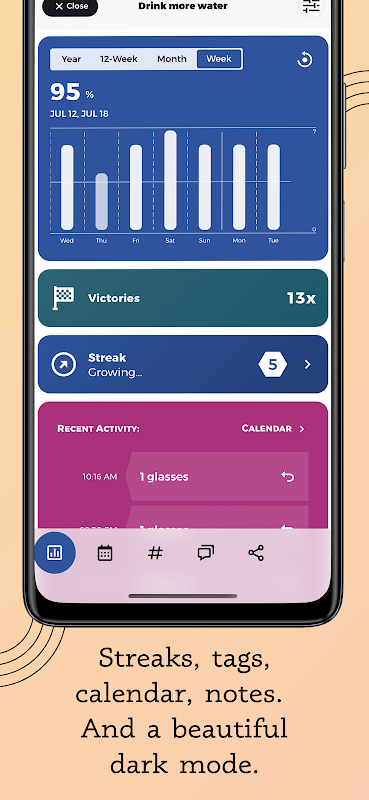 + Отслеживайте свои привычки и измеряйте прогресс с помощью подробных визуальных эффектов, которые усиливают ответственность.