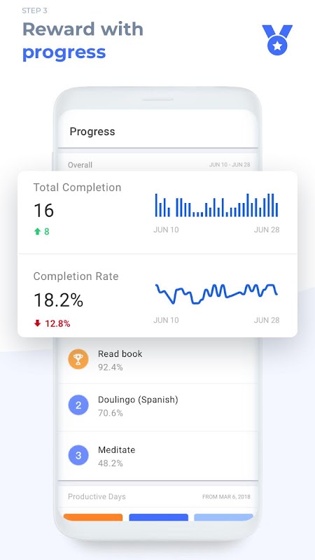 Habitify Android helps you measure progress with insightful charts and numbers. It's not only an android habit tracker app, but it's also your accountable buddy that shows how well you're keeping up with your daily routine.