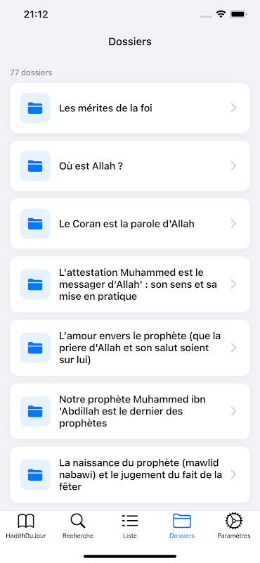 HadithDuJour — это франкоязычный веб-сайт, предлагающий ежедневные хадисы — изречения или учения Пророка Мухаммеда (мир ему и благословение Аллаха) — вместе с их источником.