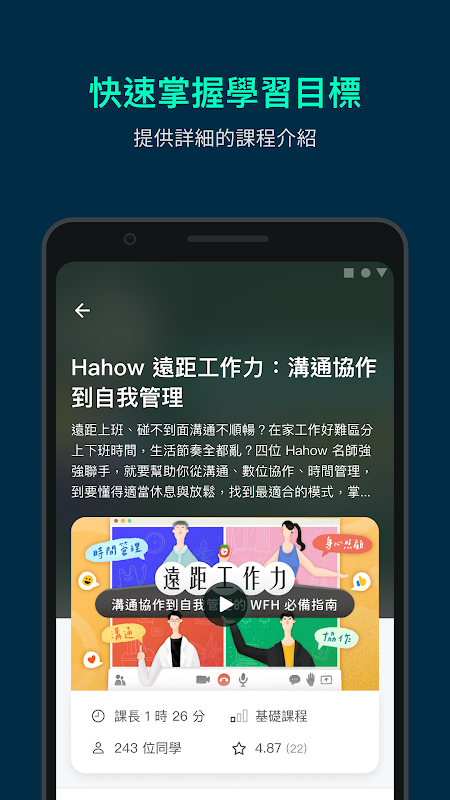 Он объединяет опыт Hahow, крупнейшей платформы онлайн-обучения на Тайване, чтобы создать лучший процесс взаимодействия с пользователем и обучения.